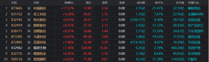 注:北证A股今日集体活跃(截至6月4日收盘)