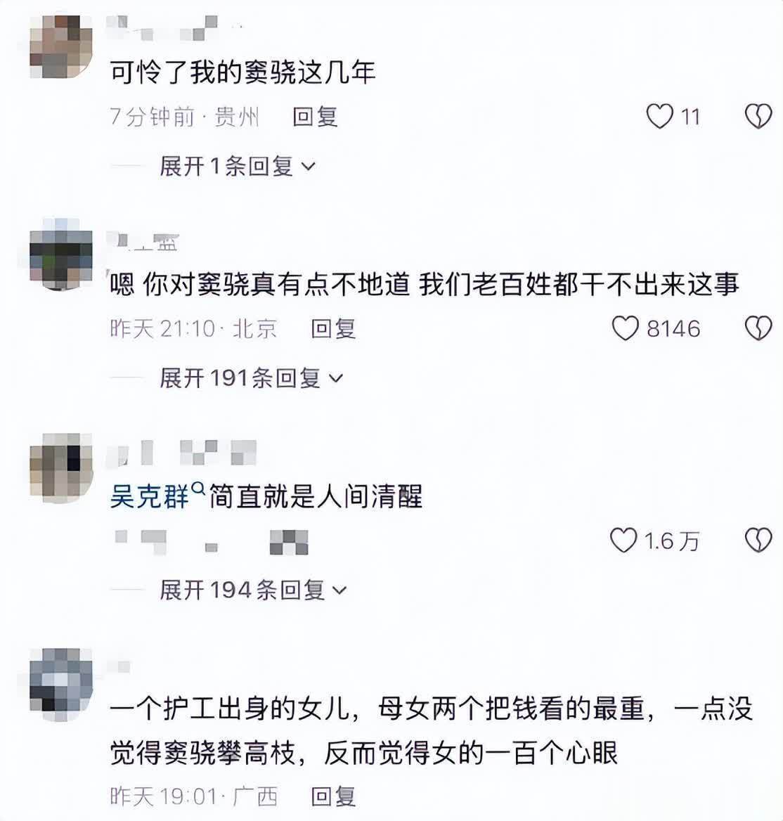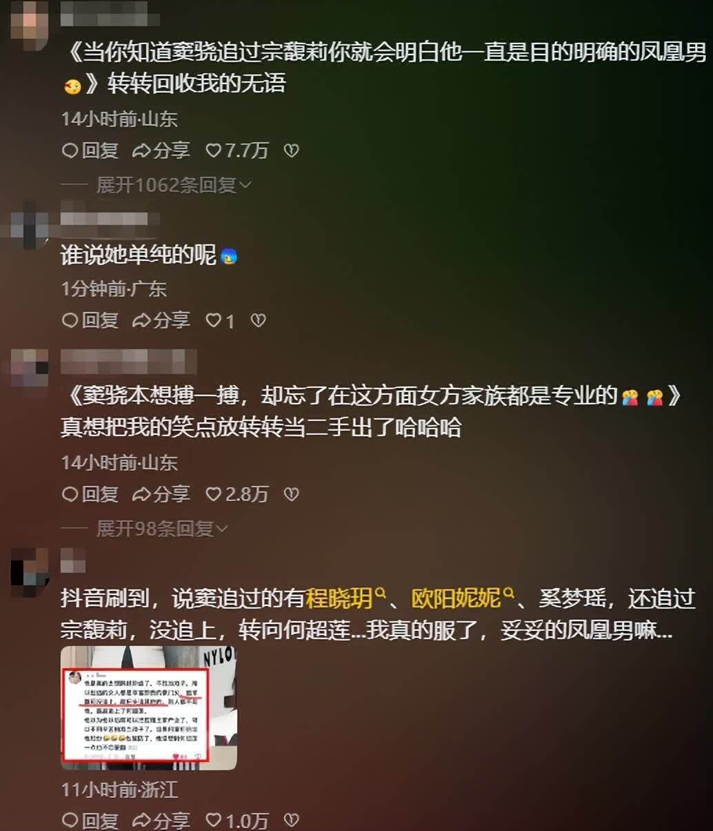 某评论区也有网友自称是窦骁的前任,说他的目的性极强,让人厌恶,家人不同意两人在一起。