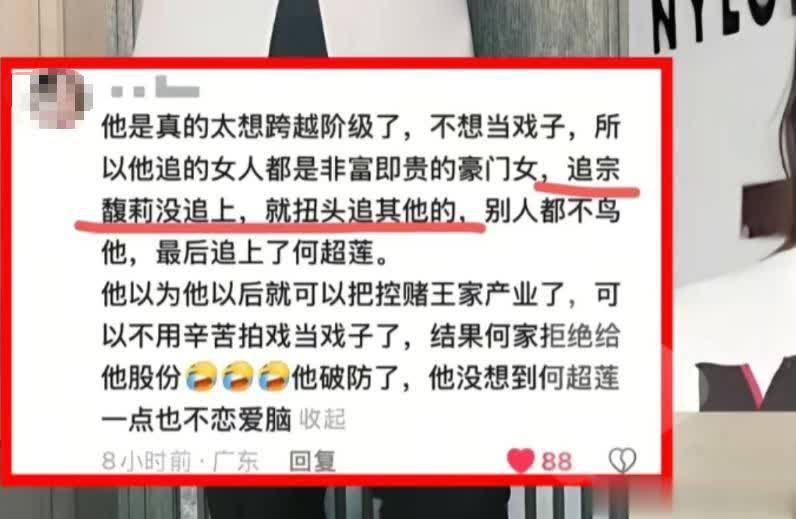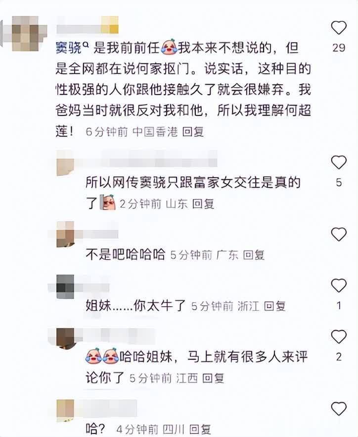 起因是在窦骁的评论区下,突然有人开始爆料“他太想跨越阶级了,追宗馥莉没追上,于是转头选择了何超莲”。