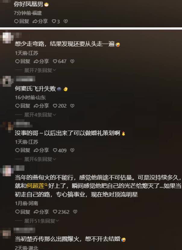 路人骂他凤凰男,称呼他为“何窦氏”,嘲讽他飞升失败,想少走弯路,结果最后发现还要全部重走一遍。